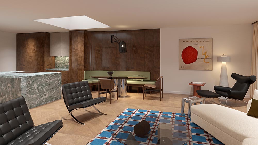 Developing the design concept with material and color choices, followed by a comprehensive interior design package complete with visuals to bring the vision to life.