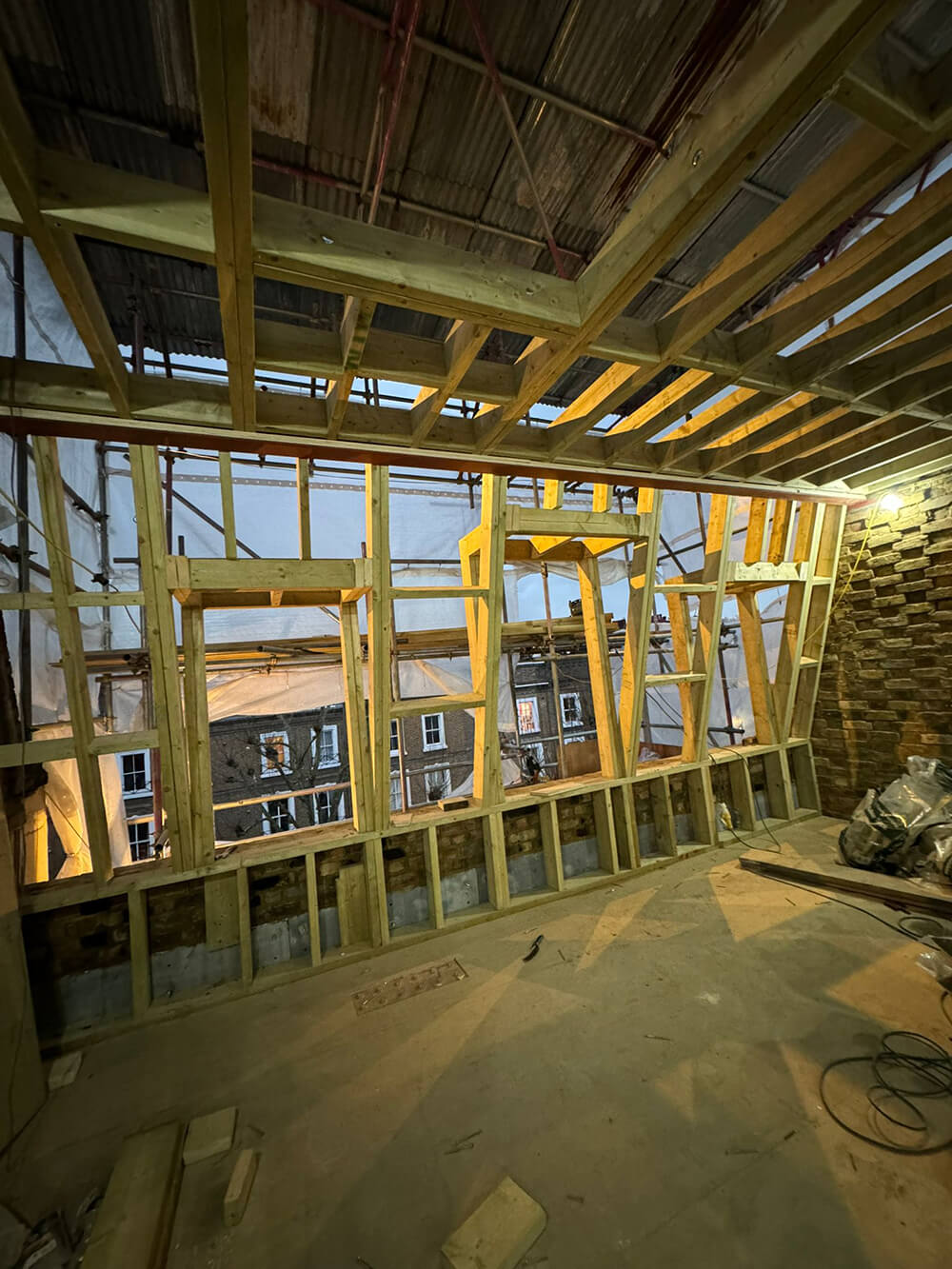 Implementing internal partitioning, installing a new staircase, plumbing, and mechanical systems, followed by decoration, flooring, and the fitting of windows and bespoke joinery elements for a polished, functional finish.